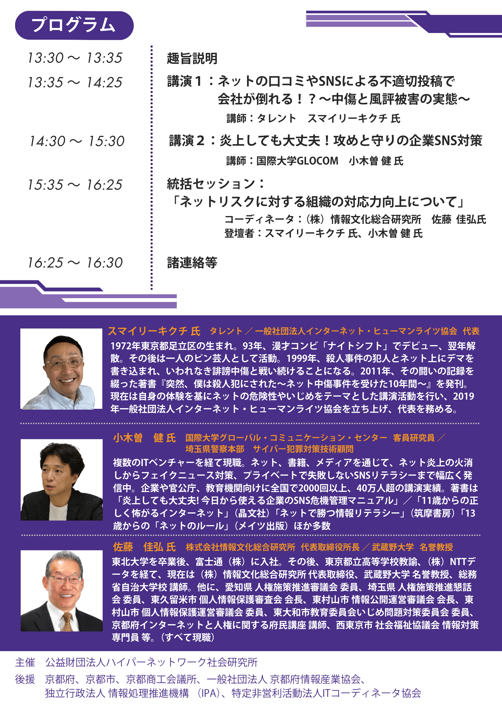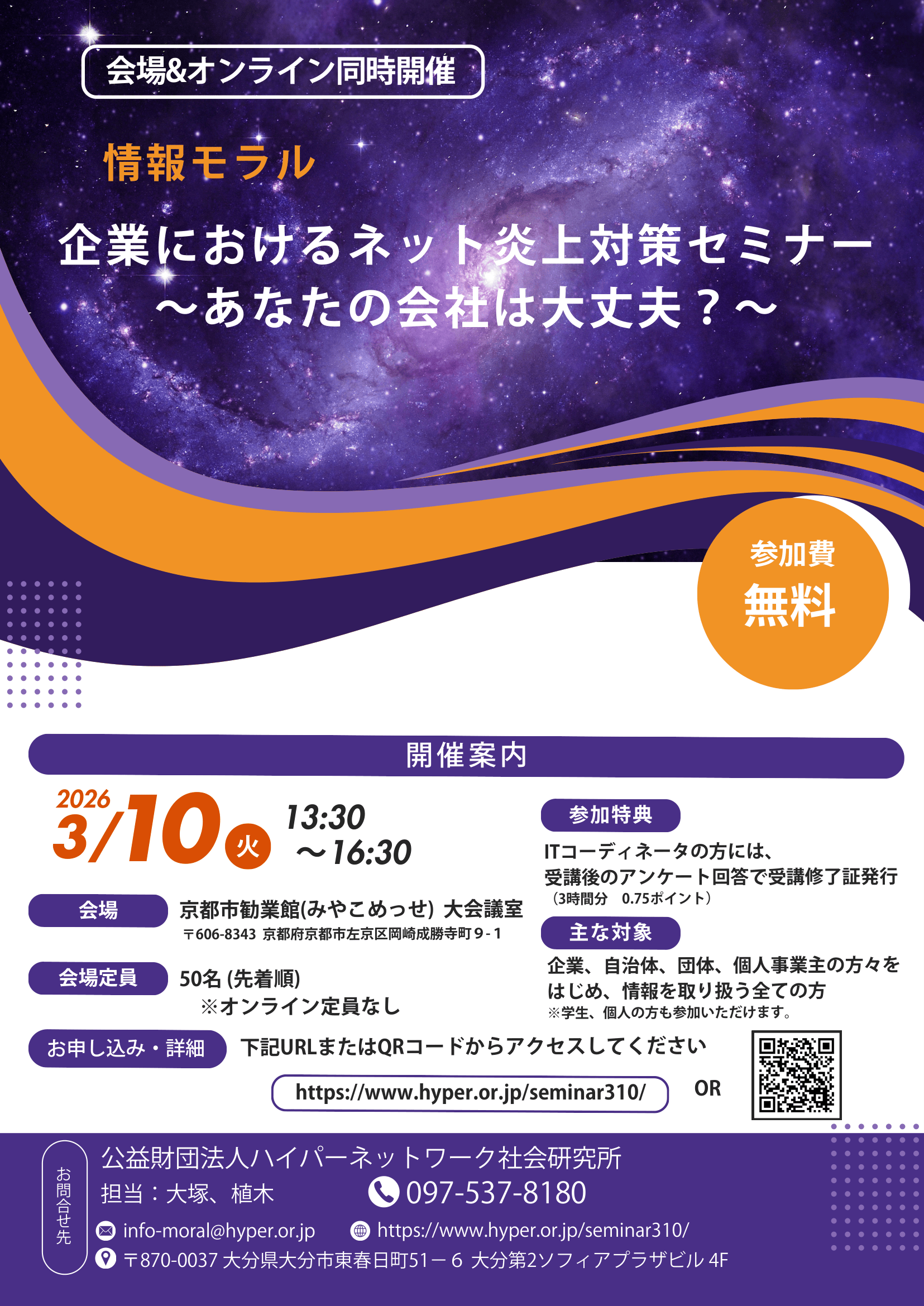 | 主催 | 公益財団法人ハイパーネットワーク社会研究所 |