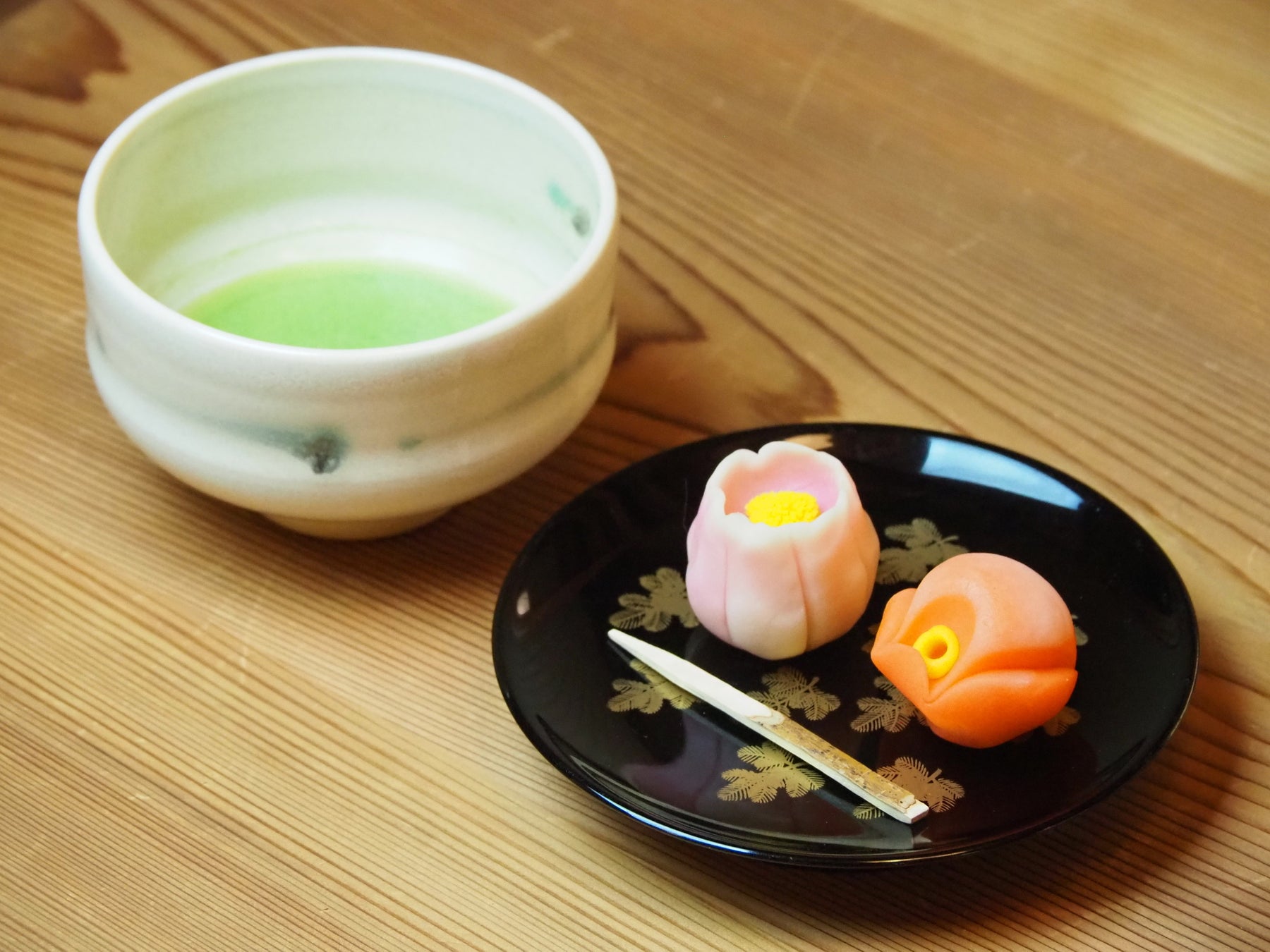 - 所要時間30分で、2個の和菓子をお作りいただけます。お抹茶は和菓子作り体験終了後に特別展示場にてお受け取りください。