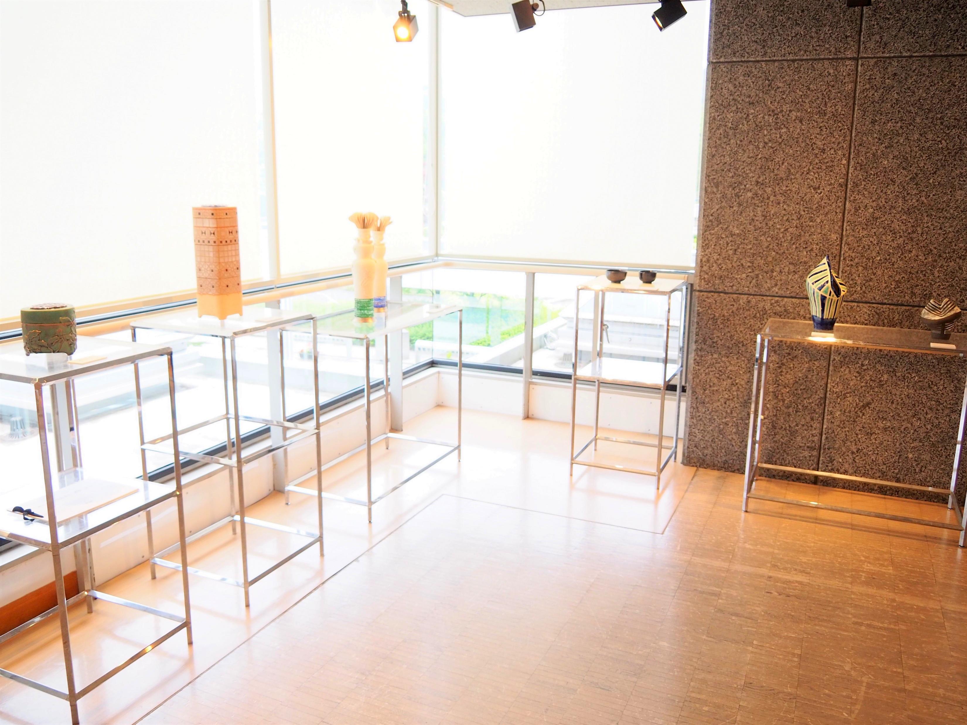 作品はゆったりと配置され、1点1点をじっくりご覧いただける展示となっていました。 展示には無料備品の金属製展示台が用いられ、すっきりとした統一感のある会場風景となりました。